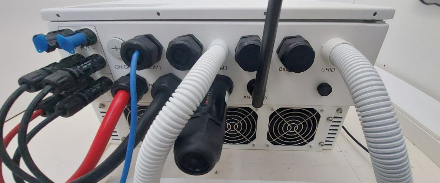 I did note that the S6 heatsink and internal PE terminals are not electrically connected and must be bonded as specified in the user manual. Once all the connections were complete, the inverter’s relatively simple but elegant-looking display lights up, giving a basic battery SoC level-type indication, any alarm state, and the active state of the WiFi and/or Bluetooth interfaces. The inverter has a chunky WiFi dongle as well as a Bluetooth antenna that protrude from the bottom of the inverter, but that shouldn’t present a problem unless (incorrectly) installed in a very space-constrained environment. So far so good.